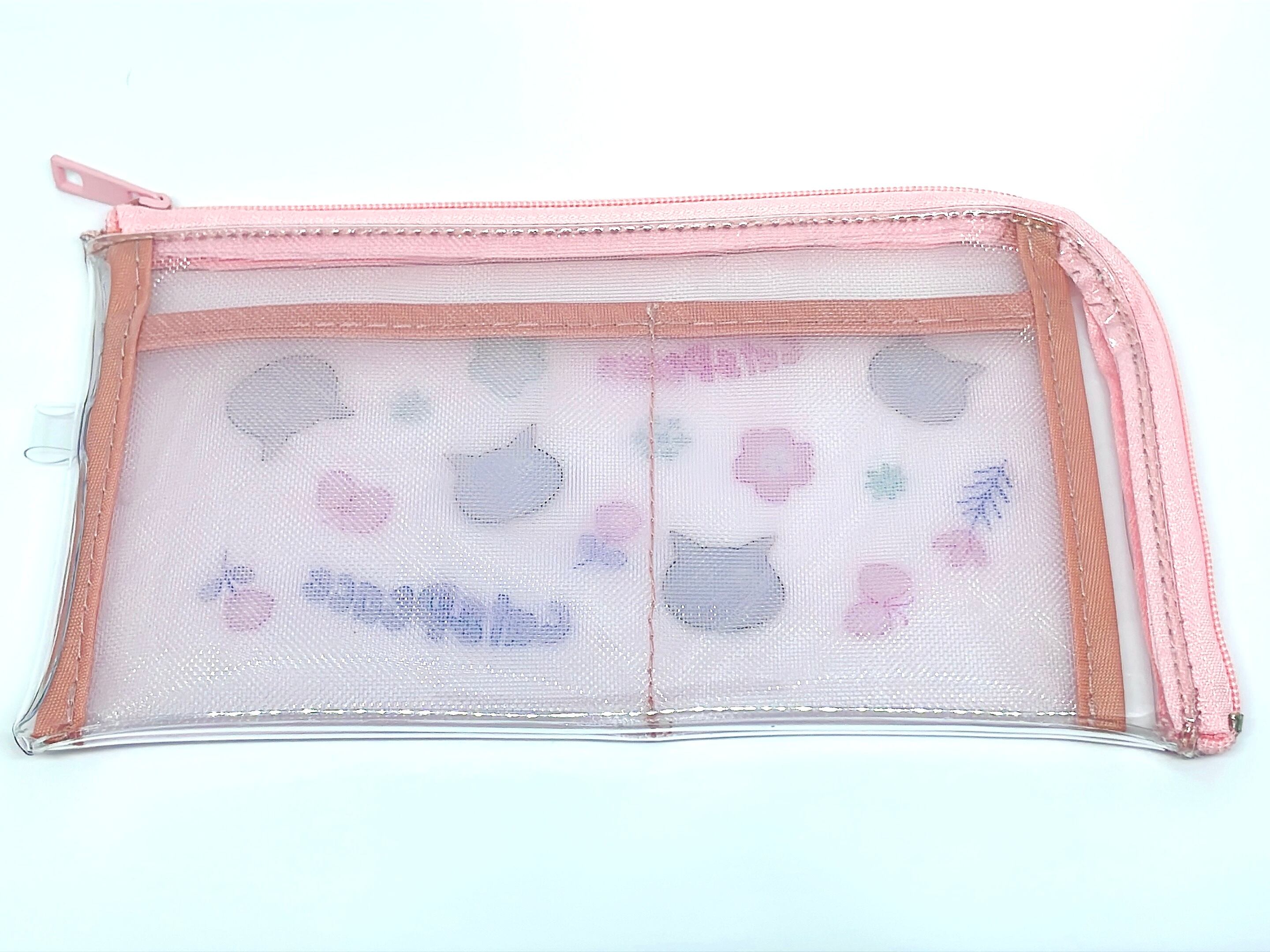 中身が見えるクリアなポーチなので、メッシュのポケットにかわいいものを入れてデコレーションも楽しめます。